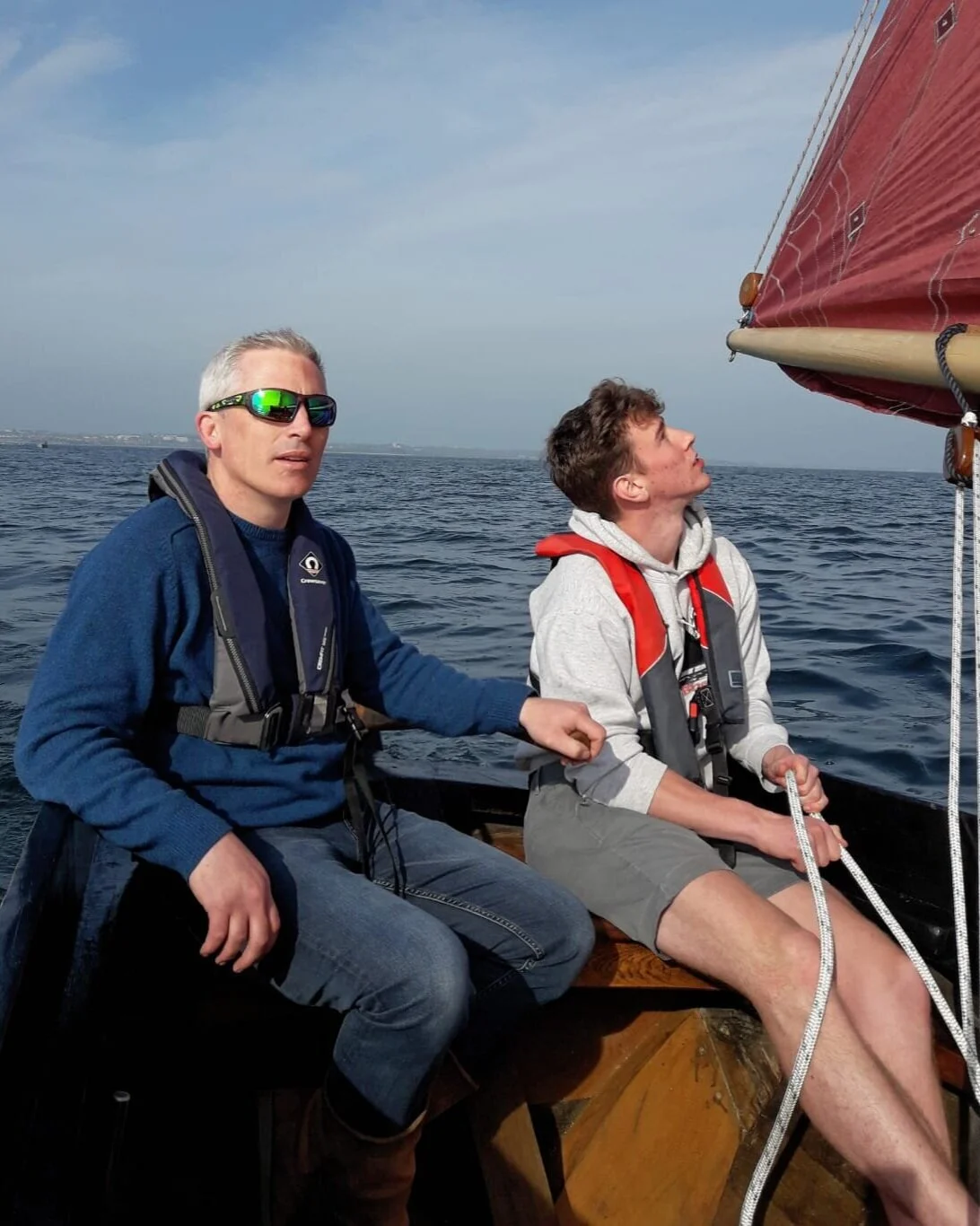 Jonathan sailing Lovely Anne with Cóilín Jr.